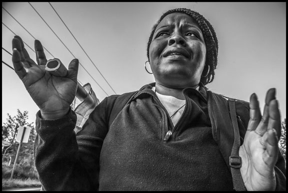 Monica Atkins of the Climate Justice Alliance in Jackson, MS, spoke with marchers about immigration raids in Mississippi and their similarity to those in Washington State. David Bacon