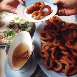 Many South American countries enjoy their own variation of this deep-fried snack. The Cuban version is made with yucca (cassava) and sweet potato flavored with anise. The dough is shaped into figure eights and topped with syrup.