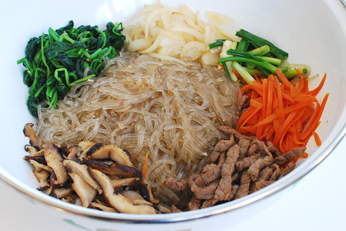 Ingredients prepared for japchae. Photo from Korean Bapsang.